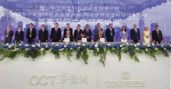 7月6日,中法農(nóng)業(yè)科技園開工儀式與“鄉(xiāng)村振興·國際合作”中國(眉山)中法友好國際交流合作對話會在四川省眉山市舉行,這標(biāo)志著規(guī)劃占地面積18平方公里,計劃總投資約300億元的中法農(nóng)業(yè)科技園項目正式開工建設(shè)。華僑城集團有限公司董事長、黨委書記段先念,華僑城集團有限公司總經(jīng)理、中國旅游景區(qū)協(xié)會會長姚軍,深圳華僑城股份有限公司副總經(jīng)理、華僑城西部投資有限公司執(zhí)行董事、總經(jīng)理張大帆,DLBT集團董事、法國歐倍歐集團董事長杰爾姆·維梅爾等企業(yè)代表齊聚東坡故里、詩畫眉山,共同參與項目啟幕儀式的相關(guān)活動。