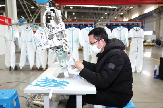2月20日,國機集團中國電研成功生產并交付首批醫用防護服壓條機。國機集團恒天嘉華非織造有限公司為確保防護用品原料供應,開足馬力全線投產,其中一條萊芬生產線屬國際領先,生產的產品可用于高端醫療防護。國機集團經緯紡織成功研制半自動、全自動N95立體口罩機。據統計,口罩、防護服醫用無紡布原材料每天可產120噸,已經達到同類生產線的極限。其中,每天可產熔噴過濾紙16噸,可作為3200萬個普通醫用口罩的過濾材料;SSS口罩材料55噸,可供生產6000萬個普通醫用口罩;醫療SMS無紡布49噸,可供生產40萬件防護衣。這些將為醫護人員提供必要保護的物資被源源不斷送往全國各地。國機智能牽頭研制全自動平面口罩生產流水線。