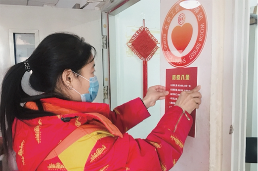 華僑城員工正在辦公區域張貼防疫知識宣傳海報