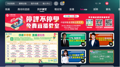 在2020年抗擊疫情全港停課的關鍵時刻,香港公司于2月初就迅速推出“停課不停學、直播公益課”計劃,聯合多家專業教育機構,按照教學大綱開展在線公益課,通過APP、電視盒子、網頁等多種形式,面向全香港中小學生,提供免費在線教育服務。學生、家長和老師可通過“UTV”或“電視盒子”觀看視頻,再配合“同步課堂”的練習系統,跟進鞏固學習效果。本次活動社會反響熱烈, 30多家學校50多位老師積極參與義教,僅1個月就攝制課程150多節,網上直播課程吸引超過10萬人次觀看,“UTV”用戶近40萬,“同步課堂”用戶數超過3萬。香港公司緊貼香港市民最迫切的“剛需”,解學校和家長“燃眉之急”,贏得了更多香港市民信任,有力彰顯了央企社會責任。