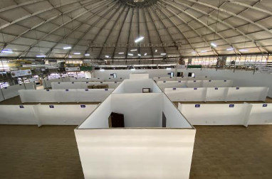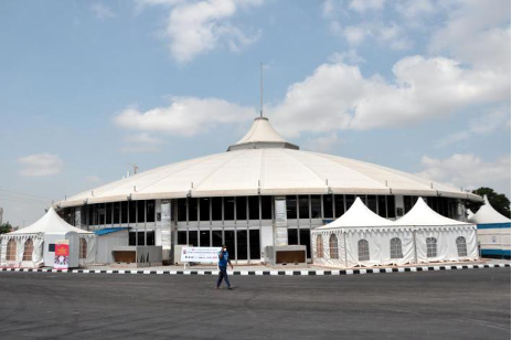 今日劇院方艙醫(yī)院位于首都地區(qū)部市中心,是在今日劇院(Thisday Dome)原有基礎(chǔ)上進(jìn)行改造而成。3月29日,中國(guó)土木尼日尼亞公司收到尼日利亞政府緊急請(qǐng)求支援,由于疫情嚴(yán)重,尼日利亞部分城市已封城、市場(chǎng)關(guān)閉、公眾活動(dòng)暫停,當(dāng)?shù)貑T工都已休假或居家辦公。中國(guó)土木尼日尼亞公司調(diào)派出所屬的阿布賈航站樓項(xiàng)目部的精干人員,組織30名中方人員、85名當(dāng)?shù)貑T工以及投入12臺(tái)套設(shè)備進(jìn)行搶建。公司用兩周的時(shí)間,完成地面重建、隔板焊接、出入口通道、廁所、消毒室、供水箱、化糞池、消毒箱等工作,并派專(zhuān)家協(xié)助其他公司負(fù)責(zé)設(shè)備安裝和調(diào)試,并于5月12日順利交付給尼日利亞政府。