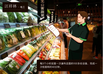 電工汪祥林和同事留下來加班,每3個小時巡查一次遍布店面的100多處設備。抄表、記錄冷鏈設備讀數,保鮮要確保在10°C以下、速凍不能高于-12°C,完成一次這樣的檢查至少要花費40分鐘。