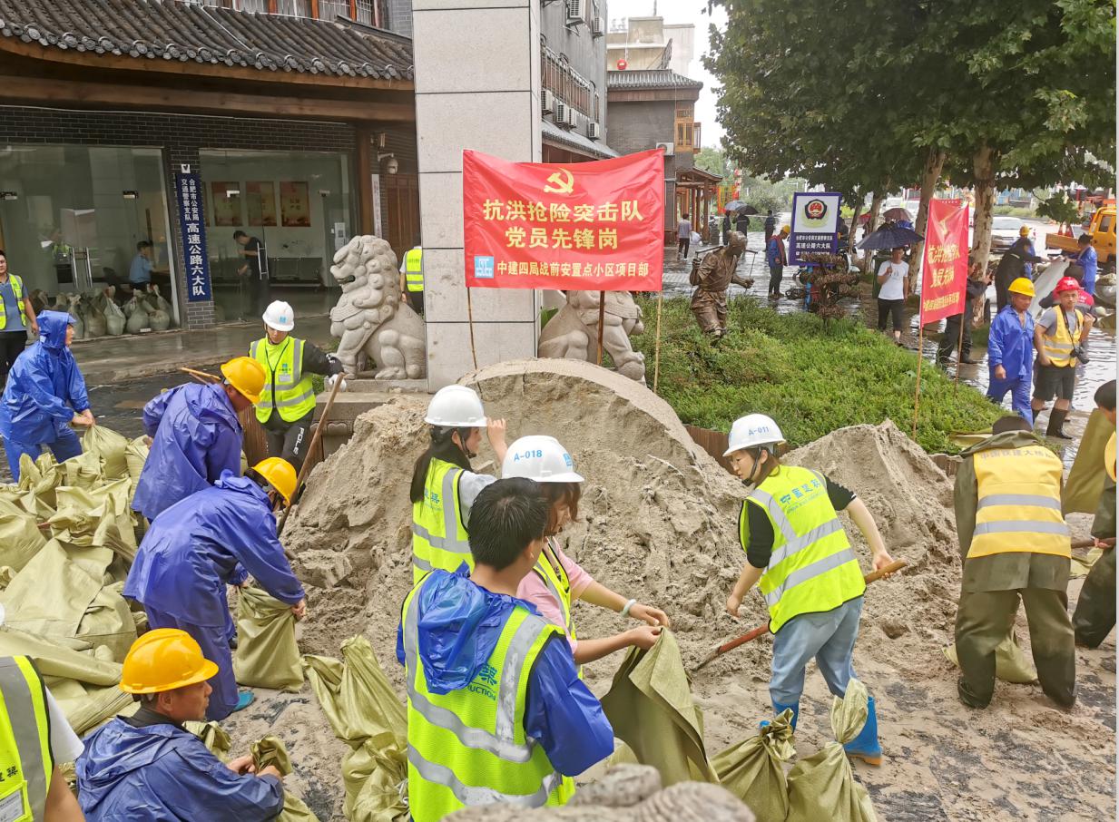 暴雨連降,分公司機關支部、合郢花園一邊解困瑤海區公租房和康居苑小區,一邊又從濱湖公園轉戰瑤海區桃花潭路,罍街四期項目、東城實驗中學項目也為巢湖路段送來防汛物資,并參與到搶險工作中,協同聯動,多點布陣,共同守護合肥的母親河南淝河。