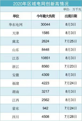 近期,受社會經濟活動進一步恢復和高溫天氣影響,國家電網經營區域內用電水平持續攀升。8月3日,國家電網用電負荷創歷史新高,達8.75億千瓦;華東電網和天津、山東、江蘇、安徽、湖南、江西6個省級電網負荷均創歷史新高。今年入夏以來,已有1個區域電網(華東電網)和11個省級電網(天津、冀北、山東、江蘇、浙江、安徽、福建、湖南、江西、蒙東、四川電網)負荷創新高。