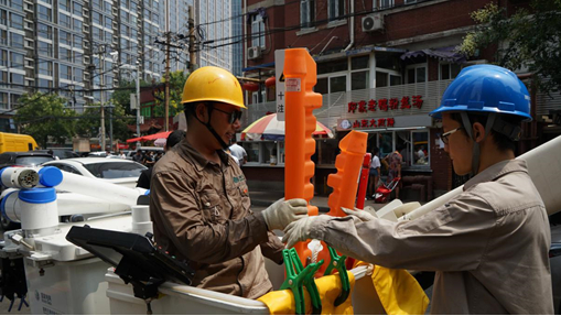 國網天津城南公司員工在高溫中開展配網帶電作業