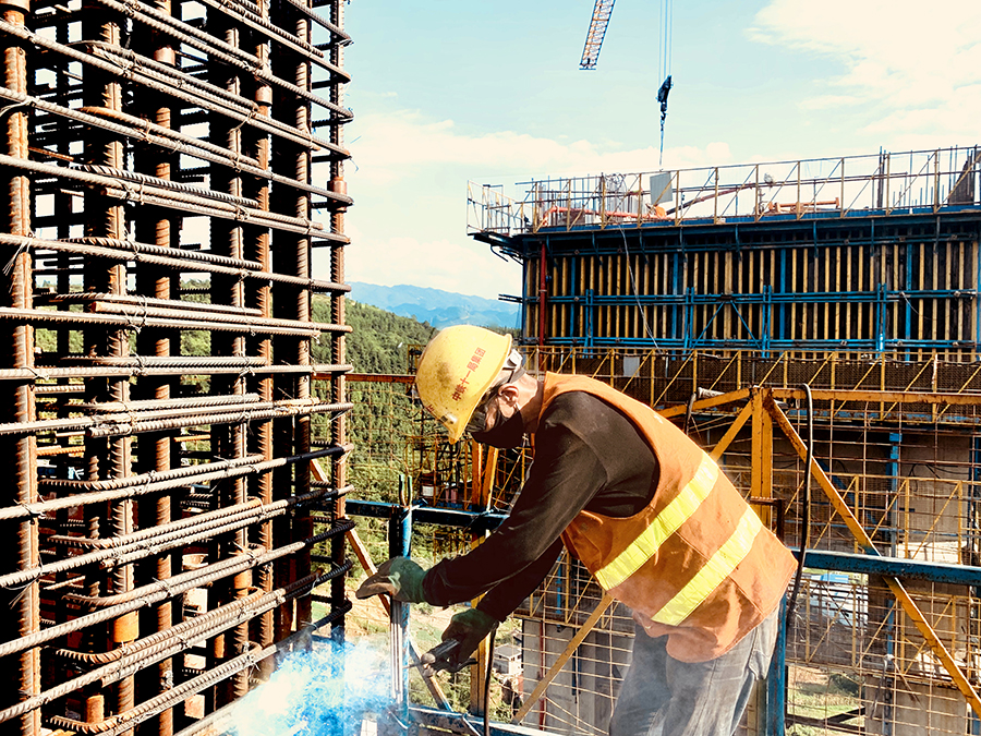 開展交心談心工作。入夏以來,該項目通過交流座談等形式,第一時間解決高溫下堅守崗位、辛勤工作的一線工人防暑降溫需求,聽取施工一線人員的建議。圖為烈日下的一線工人在百米墩身頂部焊接鋼筋。