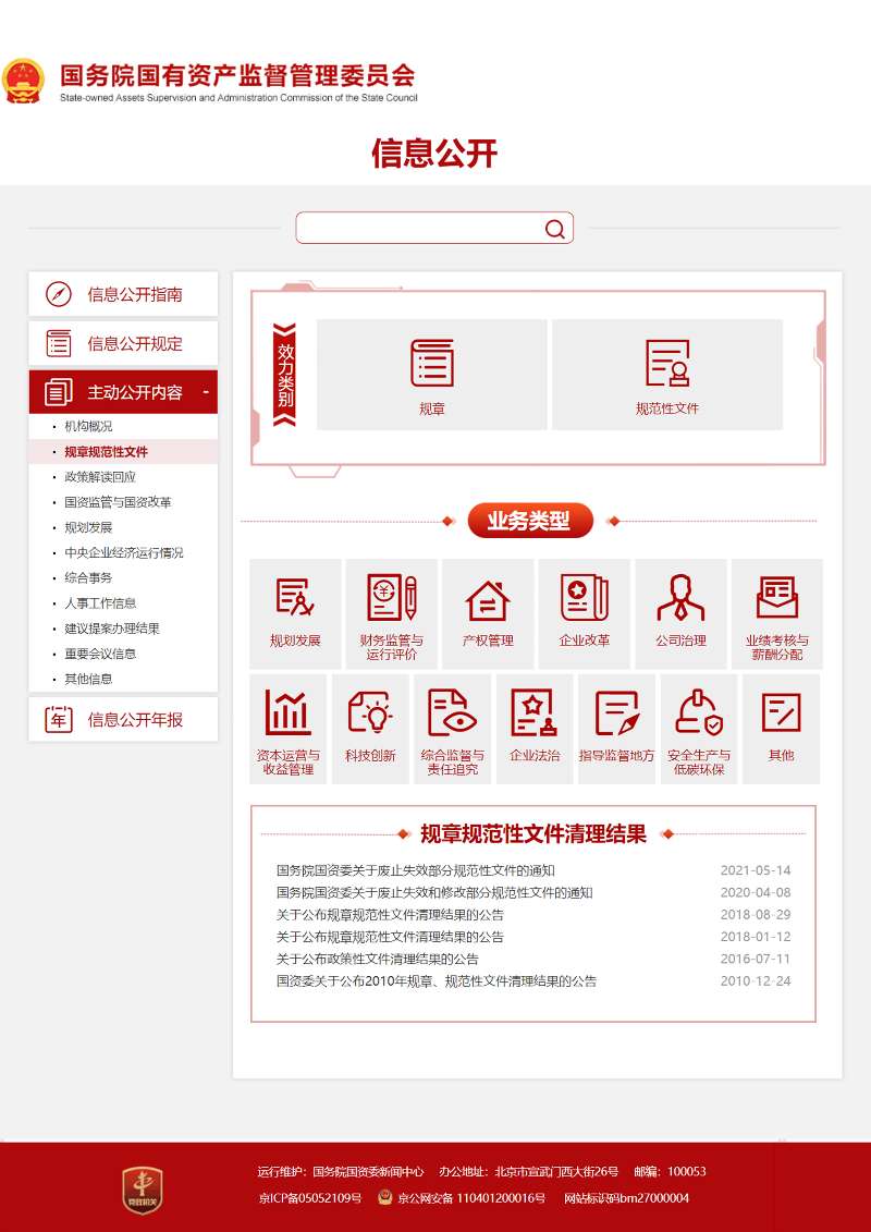 按照國資委黨委“我為群眾辦實事”工作部署,為方便中央企業(yè)和社會公眾查詢、使用國資委規(guī)章規(guī)范性文件,近期,國資委政策法規(guī)局牽頭在國資委官網(wǎng)“政務公開”專欄下的“規(guī)章規(guī)范性文件”子欄目集中公開了國資委規(guī)章規(guī)范性文件,并對欄目進行了改版:一是在網(wǎng)站首頁增加了“國資委規(guī)章規(guī)范性文件”快捷訪問鏈接,方便直接點擊訪問。二是對規(guī)章規(guī)范性文件進行了分類。按效力類別分為規(guī)章和規(guī)范性文件;按業(yè)務類型分成規(guī)劃發(fā)展、財務監(jiān)管與運行評價等13類,點擊類別標簽即可訪問相應文件。三是增強檢索功能,通過限定檢索范圍,使文件檢索更加便捷、高效。我們將持續(xù)做好“規(guī)章規(guī)范性文件”子欄目的更新、維護工作,更好發(fā)揮國資委官網(wǎng)的服務功能。