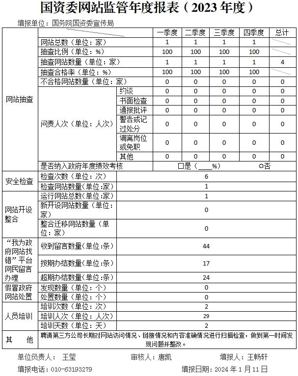 國務院國資委網站監管年度報表(2023年度)