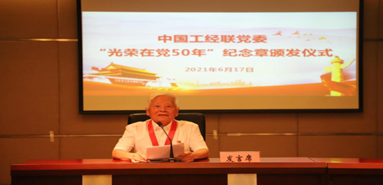 中國工業經濟聯合會黨委向全系統23位老黨員頒發“光榮在黨50年”紀念章,向老黨員表示熱烈的祝賀與崇高的敬意。