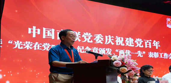 中國石油和化學工業聯合會黨委為老黨員代表頒發紀念章、獻上鮮花,感謝老黨員多年來為黨的事業、為行業發展所做的艱苦努力和無私奉獻,鼓勵老黨員繼續保持經久不變的共產黨人本色。