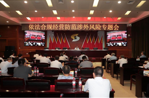 2023年9月8日,中國有色礦業集團有限公司召開“依法合規經營、防范涉外風險”專題會。中國有色集團黨委書記、董事長出席會議,總經理作專題講座,領導班子成員、境內外全部二級出資企業主要負責人及集團總部中層干部參會??偡深檰?、首席合規官主持會議。
