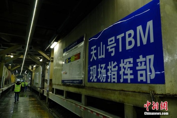 天山勝利隧道進口端的“天山號”硬巖掘進機(TBM)由中交集團自主研制,開挖直徑為8.43米、全長282米、重約2000噸,如同一座巨無霸掘進“堡壘”,可應對復雜多變的地質環境。