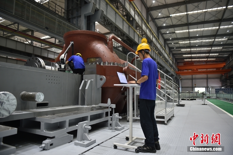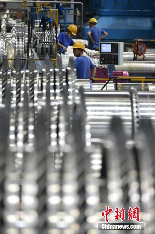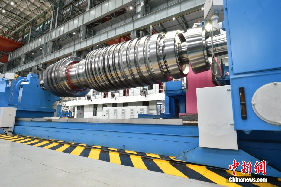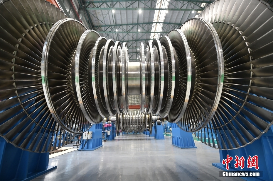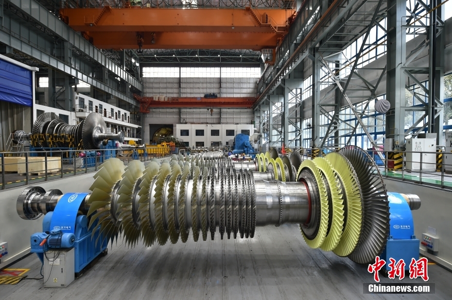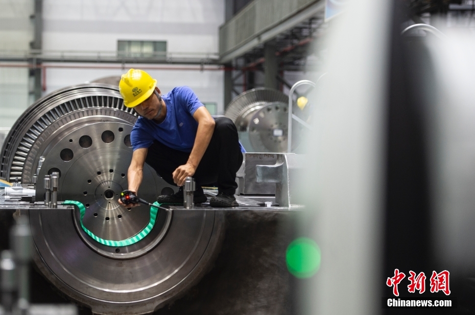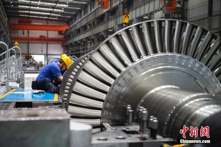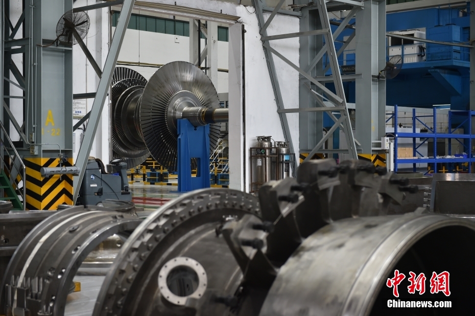 圖為車間里的一線員工在裝配汽輪機轉子。
