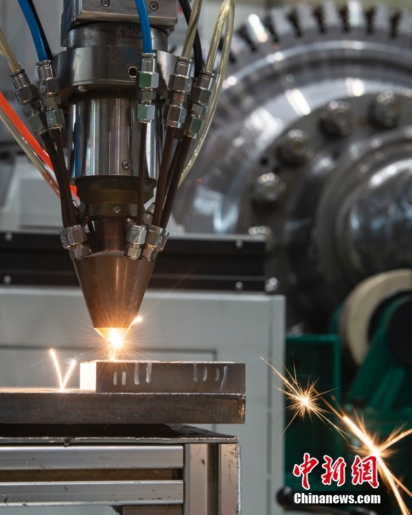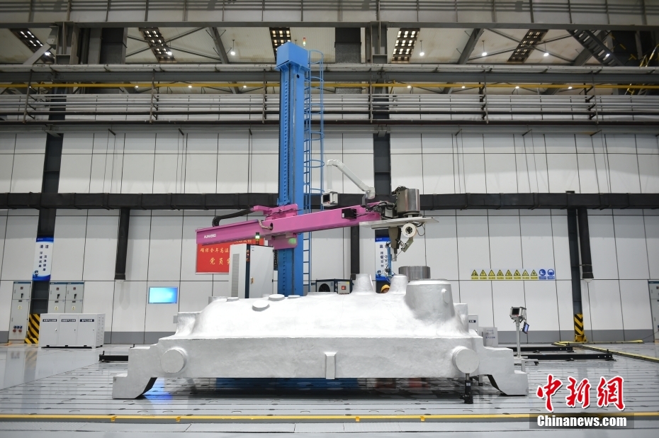 圖為車間里的移動式機器人激光修復再制造工作站。
