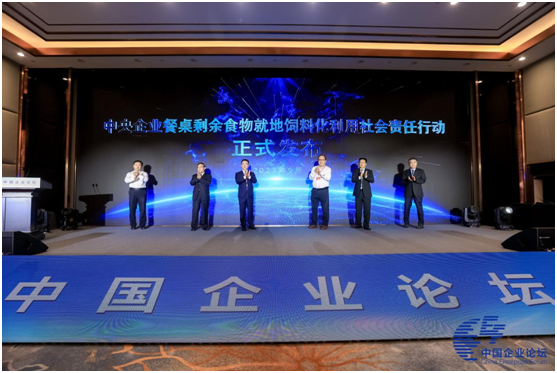 發布會上還舉行了中央企業餐桌剩余食物就地飼料化利用社會責任行動發布儀式。據介紹,中央企業集中就餐人數超1400萬人,日產生餐桌剩余食物約7000余噸。處理好、利用好企業這些餐桌剩余食物,實現“變廢為寶”,社會價值顯著、示范作用明顯。會上,中國誠通集團與中國石化集團相關負責人分別承諾,將助力國資央企走綠色低碳發展道路,做好資源高效利用排頭兵