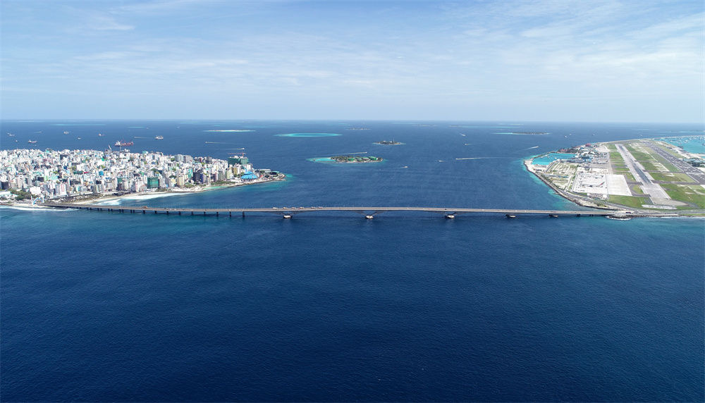 這是航拍的連接馬爾代夫首都馬累和機(jī)場島的中馬友誼大橋(2019年8月30日攝)。新華社發(fā)