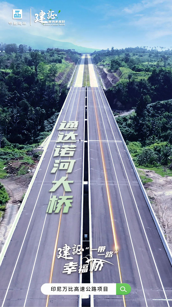 由中建交通承建的印尼萬比高速公路項目是連接北蘇拉威西省省會及旅游勝地美娜多市和重要港口比通港的重要道路,是該省六大國家戰略項目中首個開工建設的項目,其中的通達諾河大橋是萬比高速全線控制性工程,同時也是印尼首個高墩滑膜技術建造工程,曾獲境外工程魯班獎。項目通車后,從美娜多市到比通港的往來時間由原來的2小時縮短至30分鐘,舒緩了交通運輸壓力,促進了當地旅游業發展和經濟發展。通達諾河大橋建設過程中,項目團隊還與當地大學建立了密切的合作關系,為大學生提供實習崗位和就業指導,并在帕盧地震時積極組織參與抗震救災工作,多次向災區捐贈生活物資。