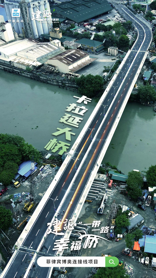 由中建交通承建的菲律賓博奧連接線項目是菲律賓政府改善國家交通狀況的重點工程。卡拉延大橋全長440米,采用雙向四車道設計,橫跨帕西格河,是菲律賓博奧連接線項目的主要組成部分,該橋梁和道路工程的建成通車極大地緩解了馬尼拉的交通擁堵狀況,使博尼法西奧環球城和帕西格市、曼達魯永市之間的交通時間從1個小時縮短到僅12分鐘,對菲律賓吸引國外投資和促進當地經濟發展具有重大意義。