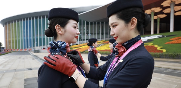 11月4日,第六屆中國國際進口博覽會開幕前一天,由80名東航優秀乘務員組成的“凌燕”禮儀志愿服務隊齊聚“四葉草”——國家會展中心,投入本屆進博會禮儀服...【查看全文】