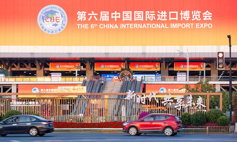 第六屆中國國際進口博覽會即將在上海舉行,國家會展中心(上海)裝點一新,迎接八方客商。圖為10月31日拍攝的國家會展中心(上海)南廣場。新華社記者 王翔 攝