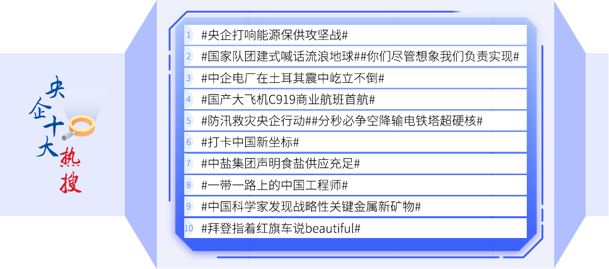 2013年以來,國務(wù)院國資委新聞中心已連續(xù)11年發(fā)起國企足跡年度盤點(diǎn)。經(jīng)過國資委中英文官網(wǎng)、“國資小新”、《國資報(bào)告》雜志結(jié)合大數(shù)據(jù)分析和專家意見,千萬網(wǎng)友和粉絲熱情參與網(wǎng)絡(luò)投票,最終“頂”出今年的“央企十大超級工程”“央企十大國之重器”“央企十大暖鏡頭”“央企海外十大精彩瞬間”“央企十大熱搜 ”,讓我們一起來回顧、致敬這極不平凡的2023年。