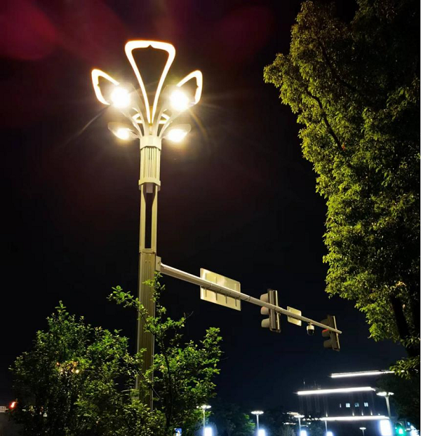 江西贛江新區中醫藥產業園的銀杏葉造型智慧合桿路燈