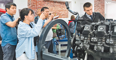 在阿魯爾集團與庫斯塔奈交通運輸職業學院合作共建的學習基地,聯合采訪團隊正在拍攝學員實操。