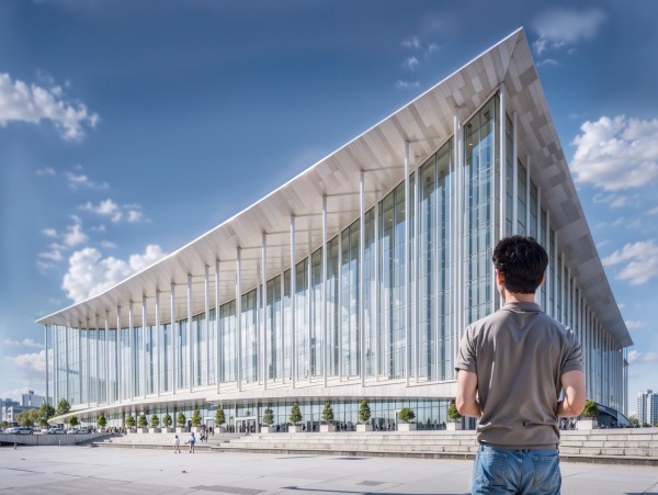 這組作品展示了三幅代表性的現代化建筑:港珠澳大橋、中國華潤大廈和西安國際會展中心。每幅作品的前景都是身著華潤建材科技潤豐、潤品服裝的工作人員背影,他們注視著這些宏偉建筑,象征著我們在這些重大工程中的參與和貢獻。每個建筑都體現了華潤建材科技在基礎設施建設中的重要角色,雖然是以背影呈現,但這種方式更突顯了我們的默默奉獻。