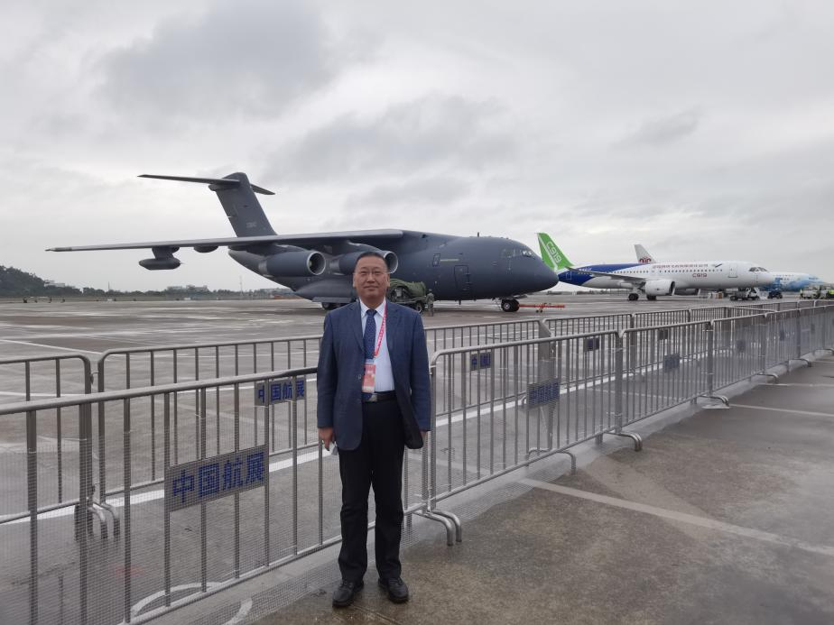 運-20大飛機使用了大量的第四代7000系鋁合金,圖為熊柏青與運20的合影