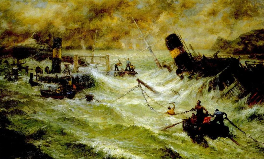 根據沉船抗日場景創作的油畫