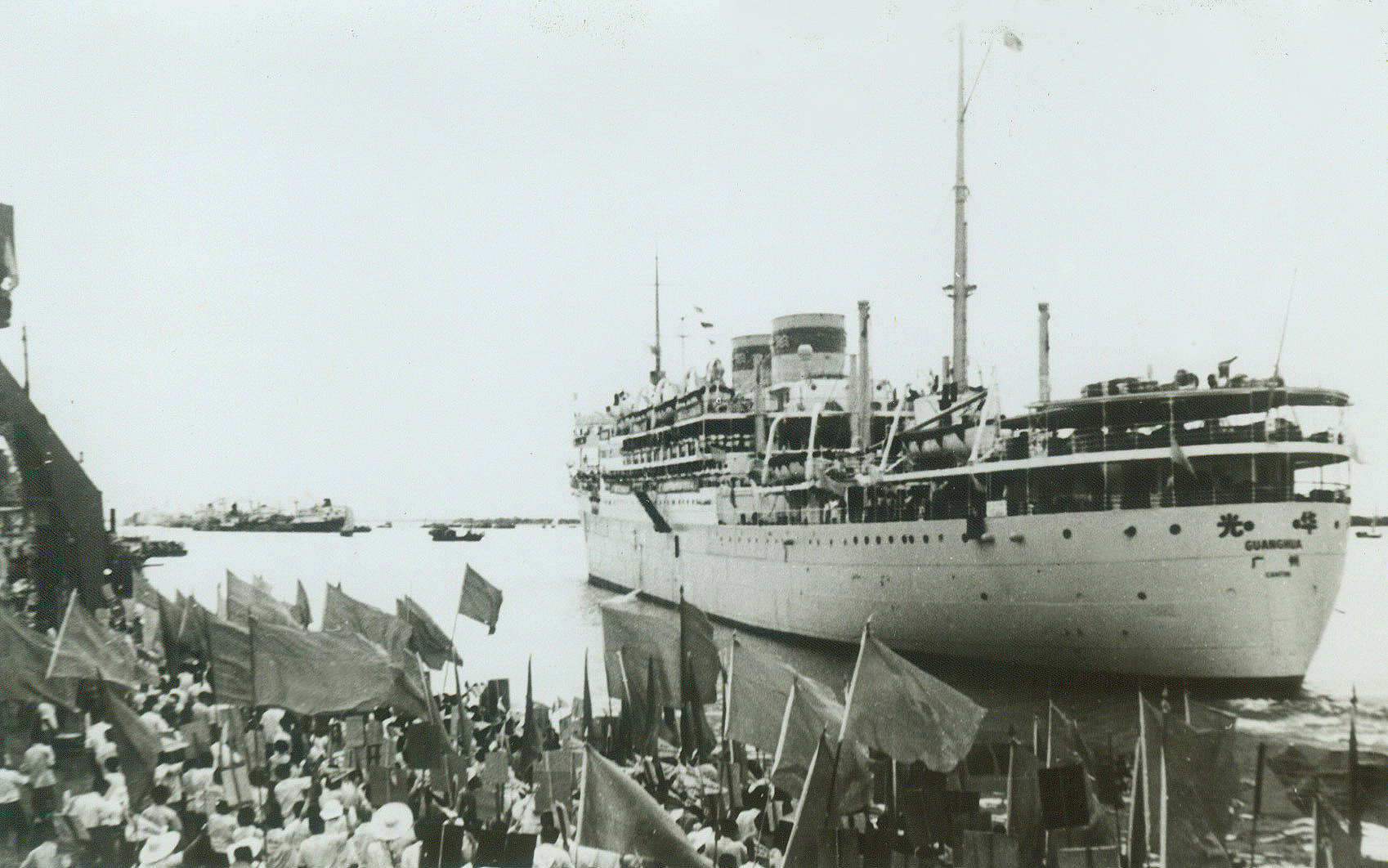 當“光華”輪到達印尼的雅加達時,迎接她的不是鮮花和彩帶,而是當地荷槍實彈、戒備森嚴的軍警。盡管如此,也阻擋不住華僑的愛國熱忱。一上舷梯,他們積郁多時的思鄉之情奔涌而出。有3位難僑一上船就來到國旗下,向五星紅旗深深鞠了三躬。一位雙目失明的老太太聽到祖國派船接僑,從一千多公里外的棉蘭來到雅加達,“我雖然見不到祖國的故土,但我摸到了祖國駛來的第一艘巨輪!”