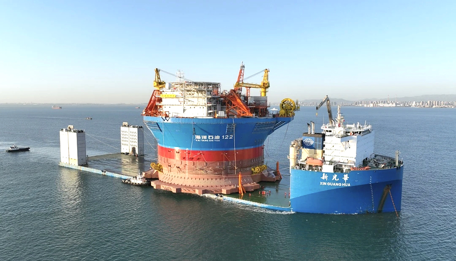 亞洲最大半潛船“新光華”輪承運亞洲最大圓筒型FPSO“海葵一號”