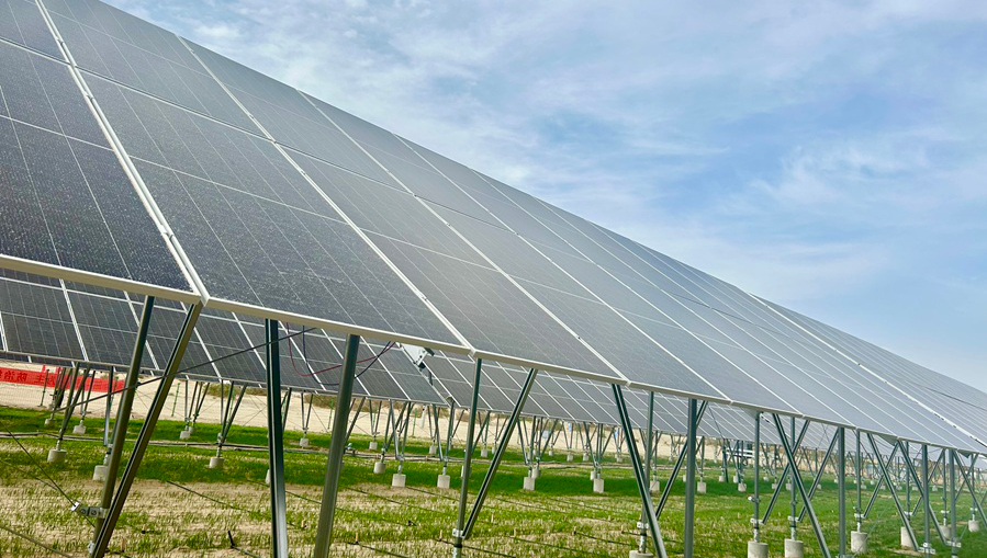 中廣核和田洛浦縣萬畝沙漠治理項目采用農光互補模式,推動新能源與治沙、綠色農業融合發展,為打好河西走廊—塔克拉瑪干沙漠邊緣阻擊戰貢獻力量。
