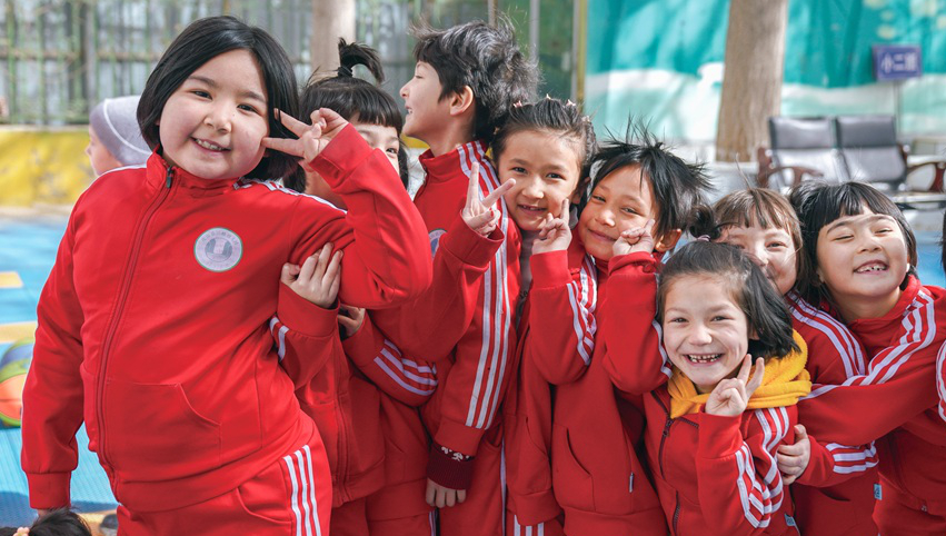 2023年,中建三局“建證未來”青年志愿者,為相識5年的新疆和田吉亞鄉阿孜乃巴扎童夢幼兒園的小朋友們送去節日溫暖,與孩子們共度“六一”。