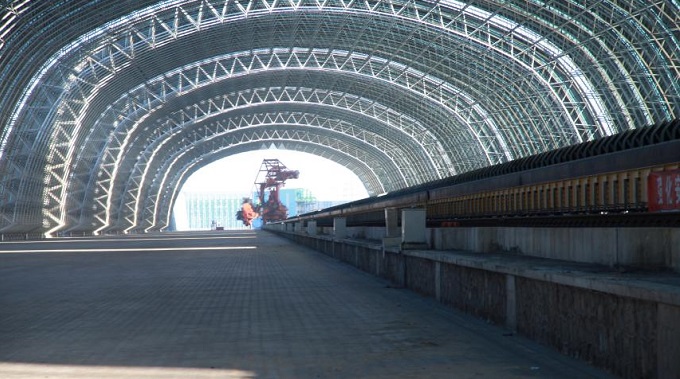 續建17、18堆場建設中采用封閉大棚結構,本工程位于續建堆場區西側,為鋼網架結構,占地100907m2,為其主要功能是起到防風抑塵作用。大棚內煤炭理論堆存能力約為400000t。