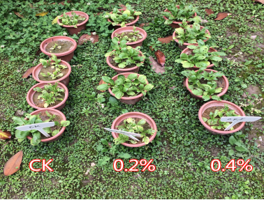 應用案例2:重金屬污染酸性土壤中小青菜種植試驗(圖4,自左向右根據土壤重量添加含硅肥料),使用含硅肥料后,小青菜的長勢明顯好轉。小青菜的產量及重金屬含量檢測數據見表3和表4。
