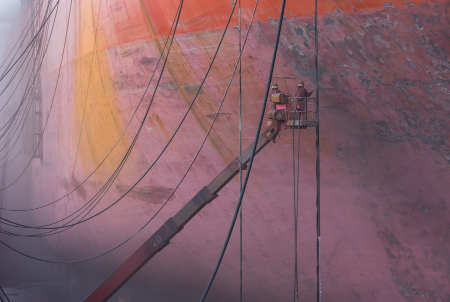 作品說明:拍攝于河北省秦皇島市山海關船舶重工有限責任公司,表現了船廠工人兢兢業業工作的場景。