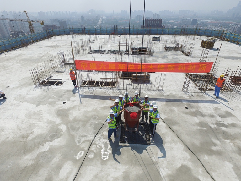 中建六局中建中心寫字樓澆筑最后一方混凝土,迎來(lái)封頂時(shí)刻